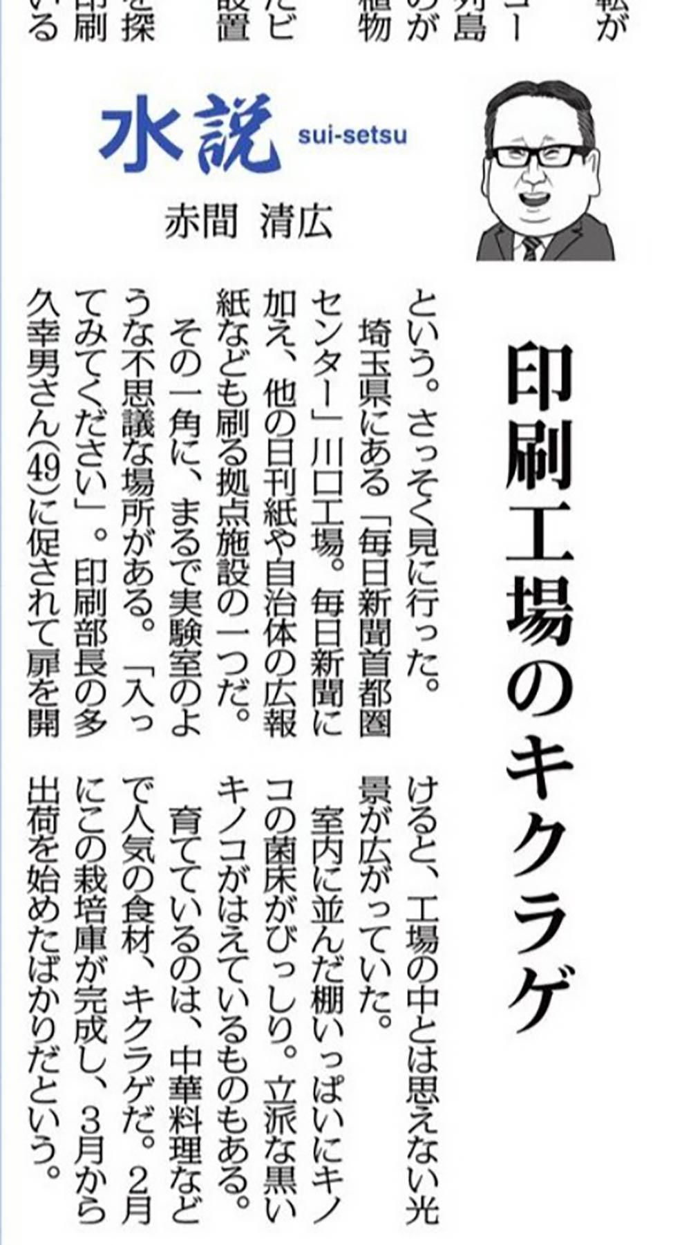 毎日新聞川口工場の副業キクラゲ繁盛記