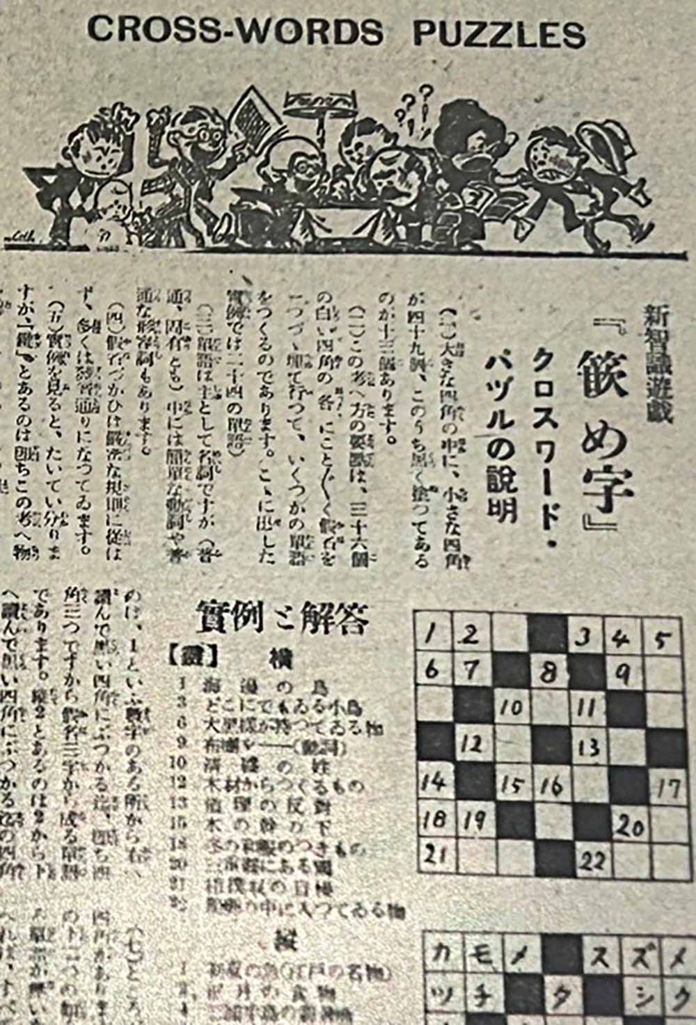 クロスワードパズルは、「サンデー毎日」大正14(1925)年3月1日号で紹介したのが始まりである。